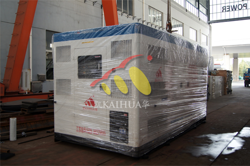 河南省某医院在我公司订购的一台500KW康明斯静音型发电机组今日成功出厂,机组采用合资重庆康明斯动力,配备知名品牌斯坦福无刷发电机,采用凯华先进的一体式液晶显示控制屏。外壳使用我公司专利静音箱体,有效的降低噪音分贝,深受广大客户的欢迎。我公司工程师对机组进行了全面的出厂前检测,各项指标均符合国家标准,下图为机组出厂现场: