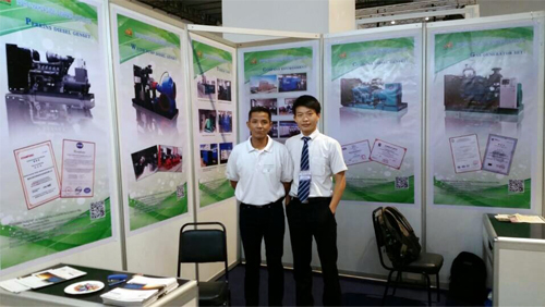 凯华公司近日成功参展2015年东南亚展会,我公司多名外贸人员赶赴现场参展,本次展会主要推出我公司新型静音环保型柴油发电机组,噪音小,污染低。许多客户对我们的产品都产生了浓厚的兴趣,希望来工厂实地考察。本次展会收获颇多,下图为展会现场:
